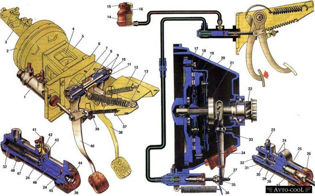 За счёт разницы давлений в двух камерах мембрана помогает давить на шток главного цилиндра