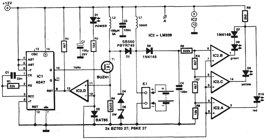 Разработано несколько схем самодельных устройств, которые подобно заводским выдают короткий импульсный ток заряда и проводят небольшой разряд в промежутках. На рисунке представлена схема, по которой нетрудно создать такое устройство, если есть знания по радиотехнике.