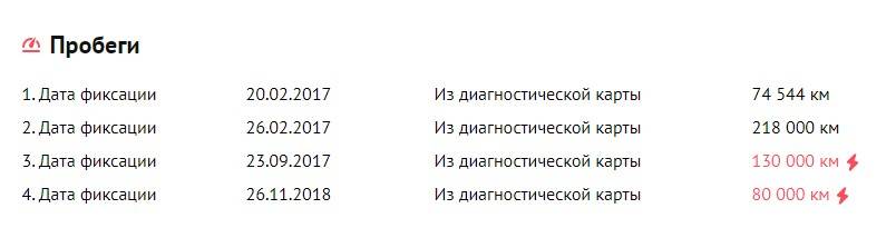 В феврале 2017 года он был 218 тыс. км, в сентябре того же года магическим образом снизился до 130 тыс. км, а год спустя вообще обнулился до 80 тыс. км.