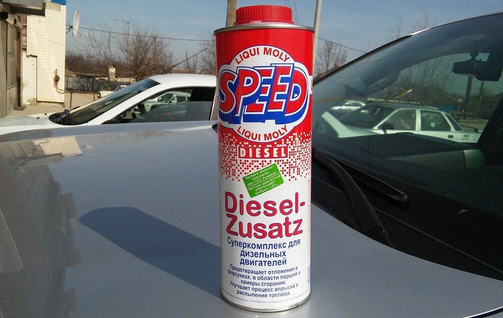 LIQUI MOLY Speed Diesel Zusatz – очень эффективное средство от известного во всём мире производителя. Его рекомендуют применять в моторах с очень большим пробегом. Состав способен увеличить цетановое число солярки. Также улучшает он и иные её качества, тем самым обеспечивая уверенный запуск силовой установки даже при сильном морозе. При этом химия надёжно защищает мотор от повреждений и преждевременного выхода из строя. Она прекрасно удаляет даже сильные и застарелые загрязнения. Средство также защищает и очищает топливную систему, увеличивая срок службы её деталей. Состав снижает механический износ мотора. Он способствует снижению расхода топлива.