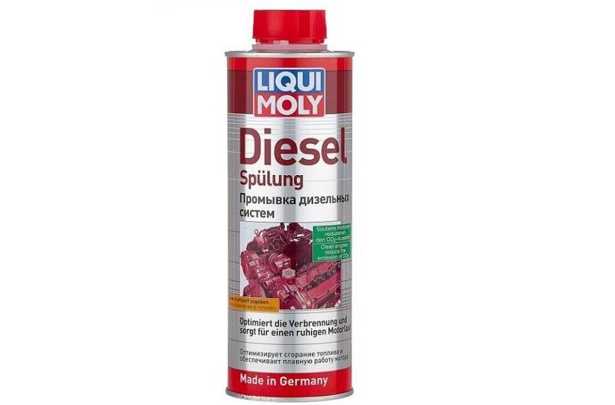 Эта добавка для очистки дизелей известной немецкой марки может применяться как для периодической промывки топливной системы, так и путем добавления в дизтопливо. В первом случае топливопровод открепляют от бака, присоединяют к емкости с добавкой и включают мотор на холостом ходу, пока весь объем не будет израсходован.