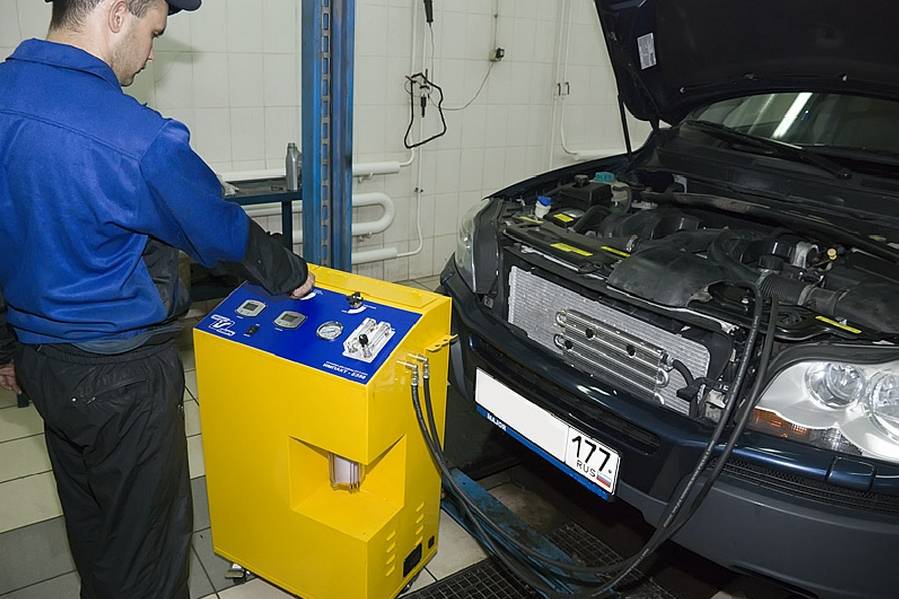 - Для полной замены необходимо специальное оборудование для того, чтобы из системы была выкачана вся жидкость, промыта система и залито новое.