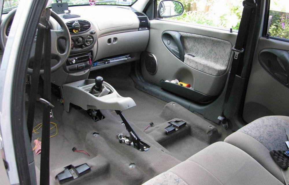 После снимаются накладки педалей, руль и педальный узел. При снятии последнего педаль газа нужно выжать до конца, далее откручивается крепление тормоза.