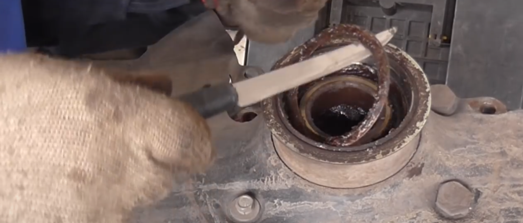 - Удалить сальники монтировкой или мощной отверткой.
