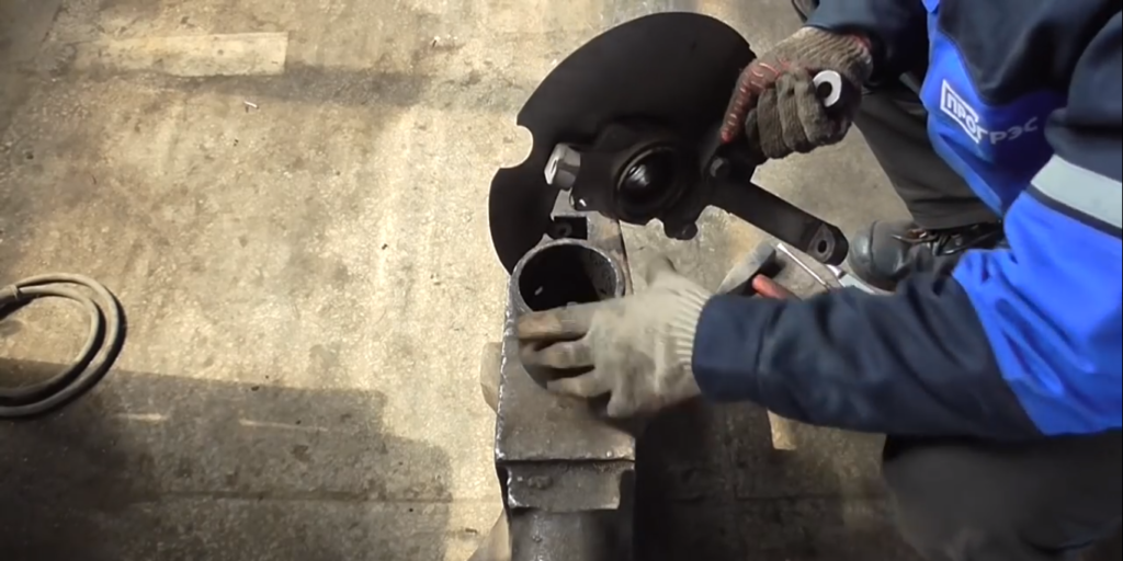- Зажать в тисках поворотный кулак.