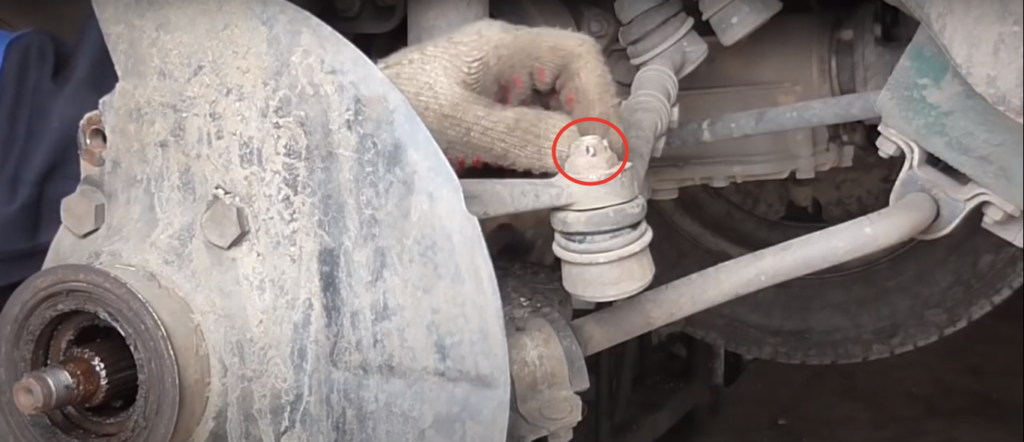 - Для того, чтобы убрать палец необходимо наличие специального съемника. На рулевой тяге отмечается то место, где располагался регулировочный болт. Когда палец выпрессован, тяга отводиться в сторону.